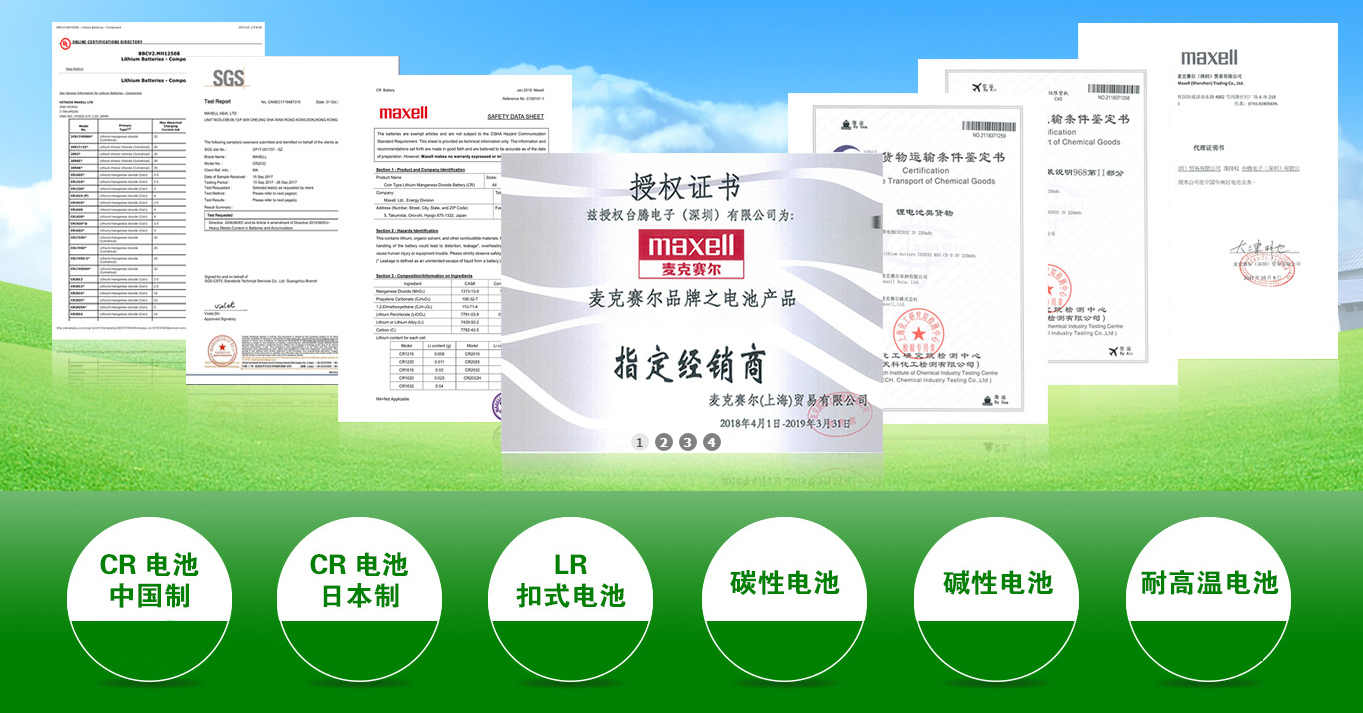 电池适用于各类RFID、电子密码仪、电子银行卡、遥控器、电子计算器、电子钟表、电动玩具、微型仪器仪表、医疗器械、LED闪灯、读卡器、小家电、防盗器、遥控器、电子秤、电子词典、MP4、数码相机、各种电子产品备用电源等产品. 长期与西铁城、卡西欧、嘉能、欧姆龙、任天堂、迪士尼等厂家合作。我司是MAXELL品牌电池唯一指定总代理;能提供正式授权证书、各类电池检测报告、认证资料、各型号电池的备案资料等等。销售热線:0769-83810608,业务直線:13424877723,欢迎致电!